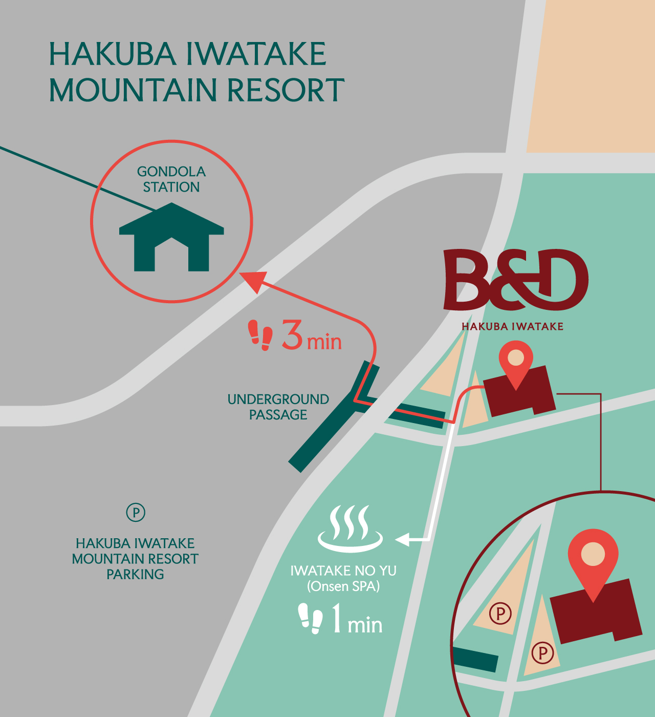 岩岳の湯まで、徒歩1分