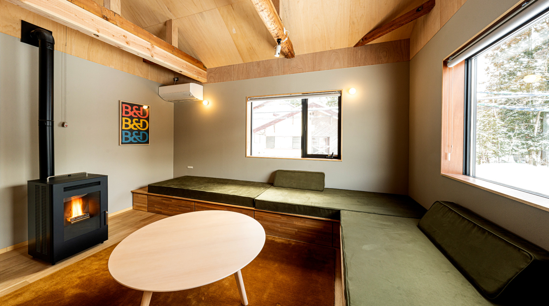 白馬岩岳を望む1階にご用意したのは、LA CASA DI Tetsuo Ota(軽井沢)の太田哲雄シェフプロデュースによるピッツァやロティサリーチキンをお楽しみいただけるレストラン「&Deli」。イートインはもちろん、テイクアウトもご利用いただけます。白馬で過ごす団らんのお供に、どうぞ特別な味わいを。